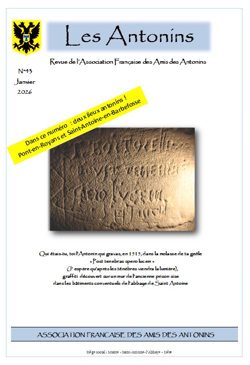 L'Association Française des Antonins s'est vue confier une mission notable. Celle de raconter et faire revivre l'épopée de l'Ordre antonin au cours d'une période marquante de l'Ordre de Saint Antoine, depuis sa consécration en tant qu'ordre monastique (1297) et hospitalier.